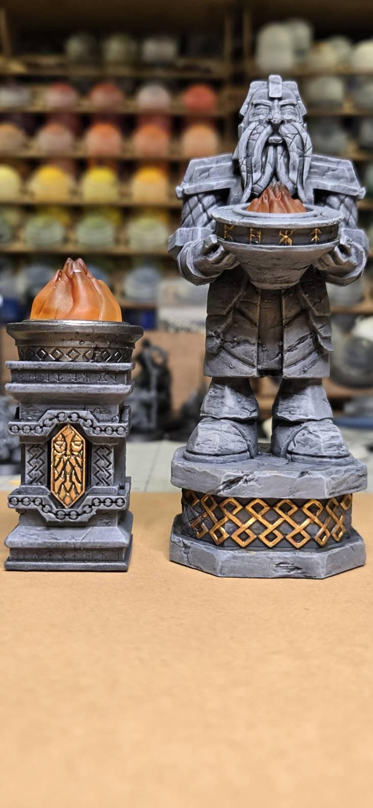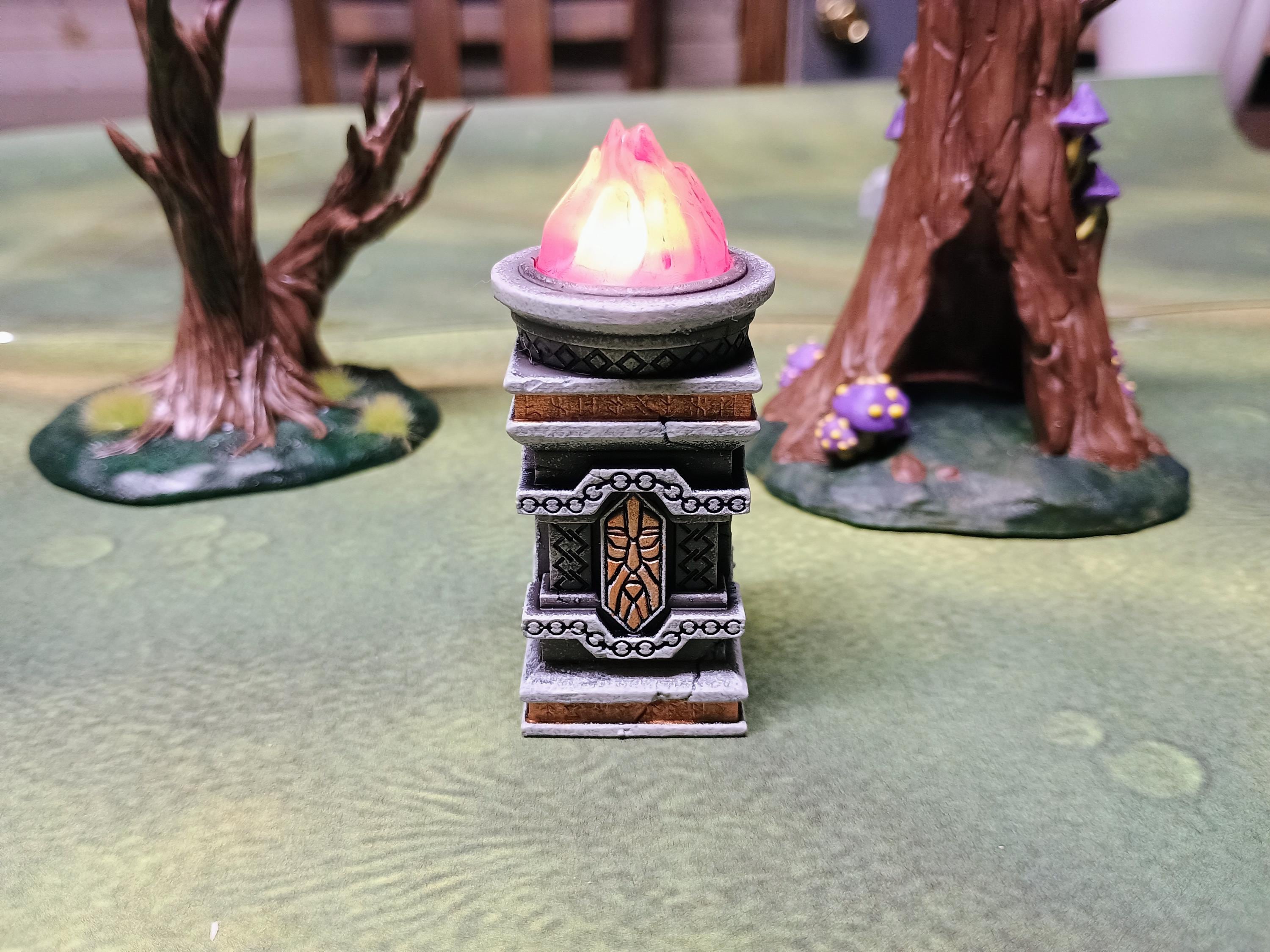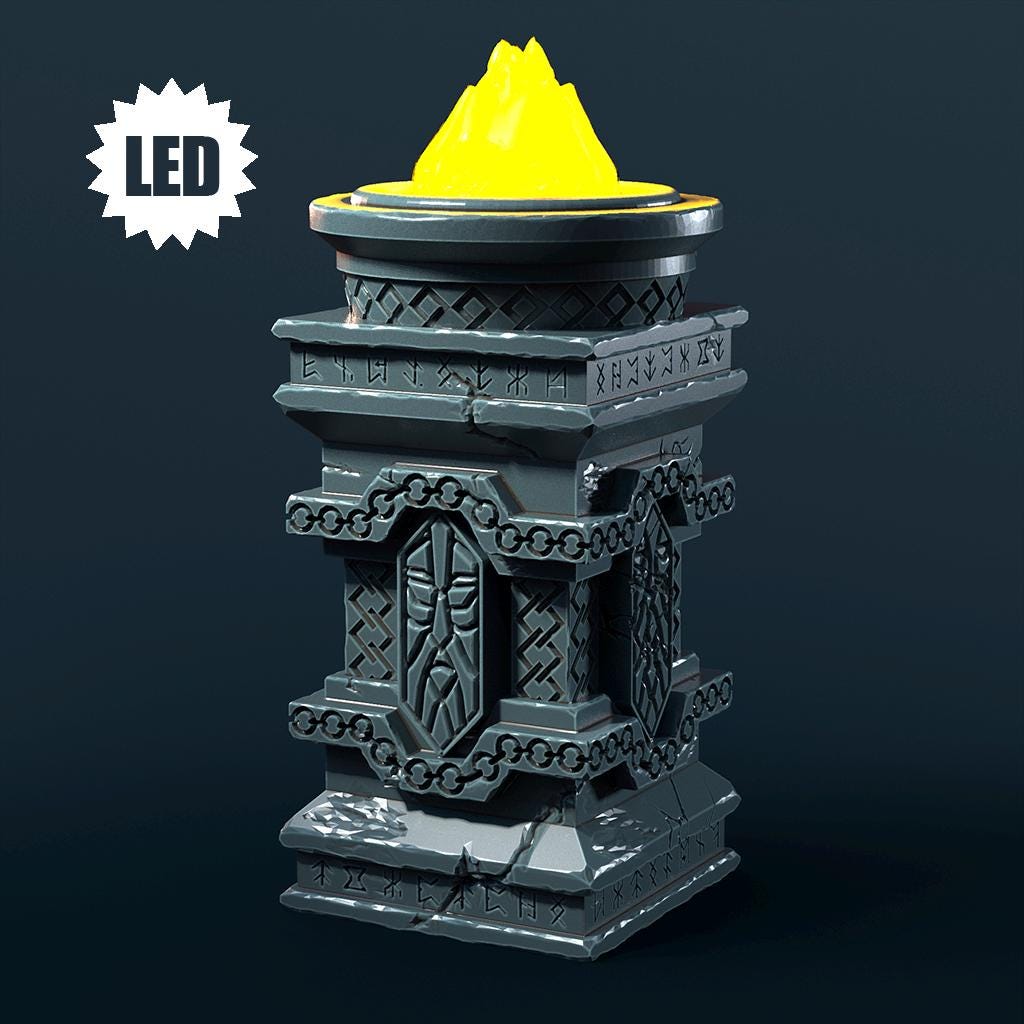 Light your tabletop with sturdy dwarven craftsmanship. This resin-printed Dwarven Column with Brazier adds dramatic, reliable lighting to dungeons, halls, and mountain fortresses. Each unit is precision-printed and identical, ready to use out of the box.