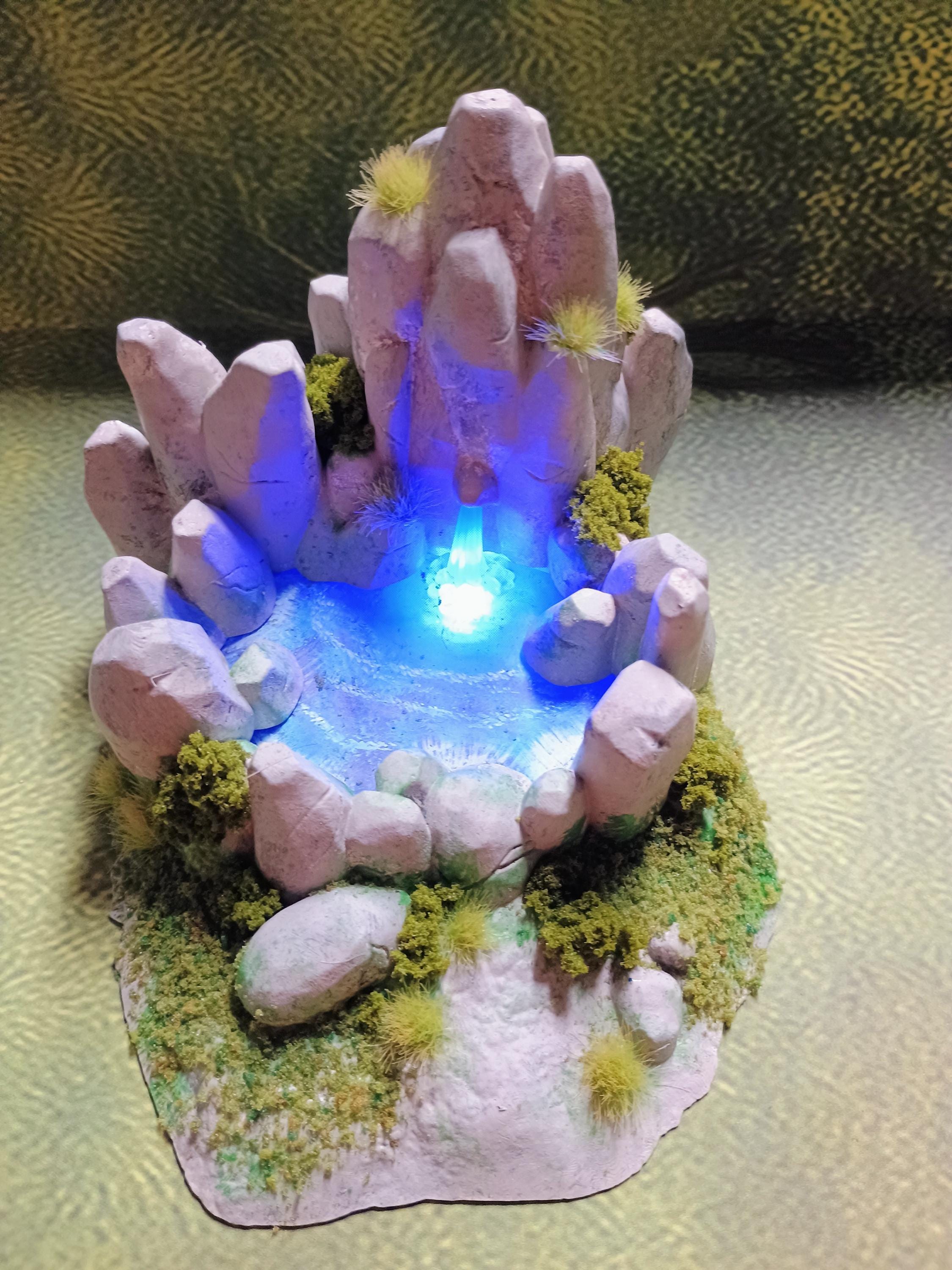 Bring your tabletop world to life with this stunning unpainted Natural Fountain with LED . Expertly 3D‑printed for crisp detail, this piece adds dramatic illumination to your fantasy scenes, giving your TTRPG, wargame or diorama that extra spark.