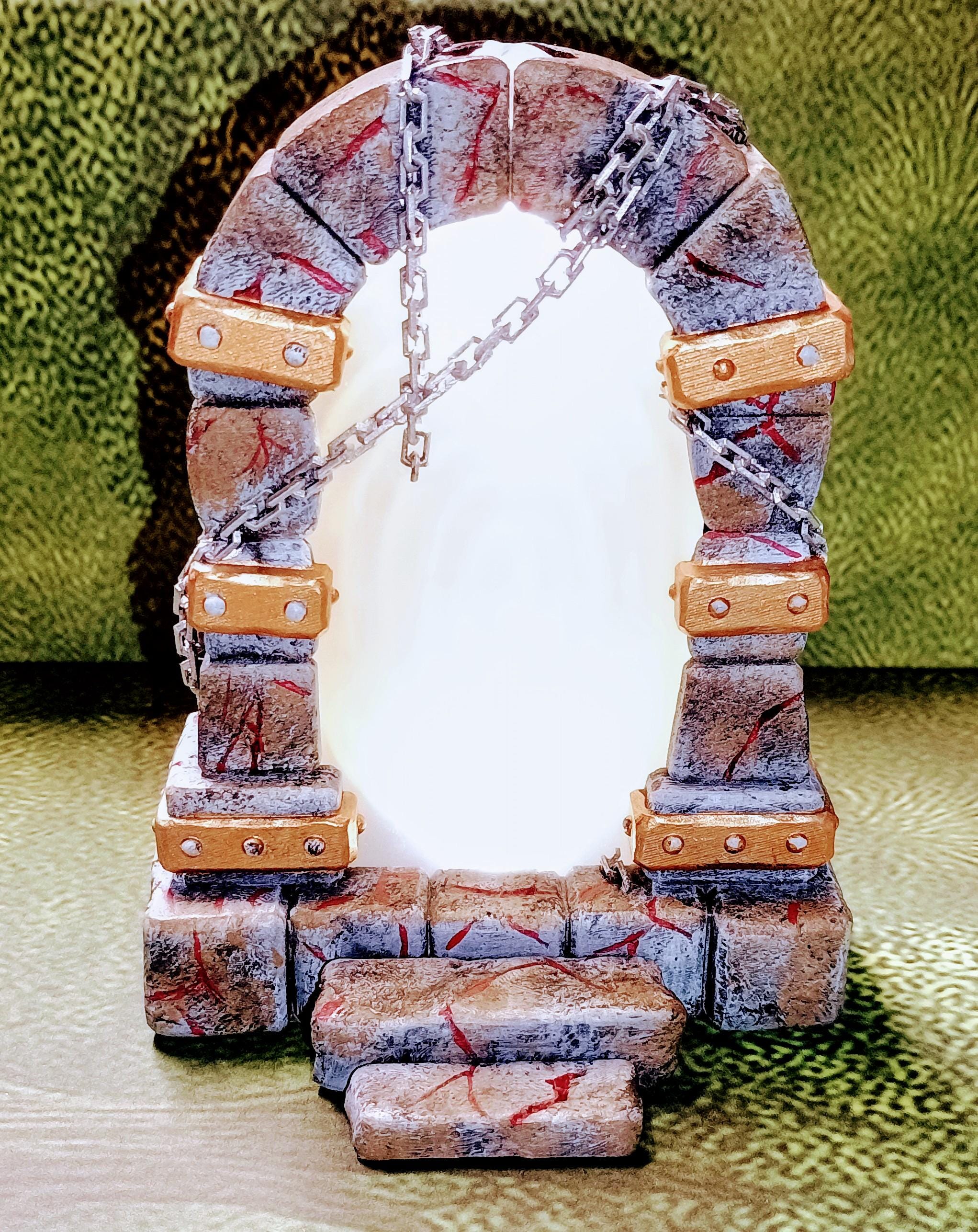 Bring your tabletop world to life with this stunning unpainted Magic Portal with LEDS . Expertly 3D‑printed for crisp detail, this piece adds dramatic illumination to your fantasy scenes, giving your TTRPG, wargame or diorama that extra spark.