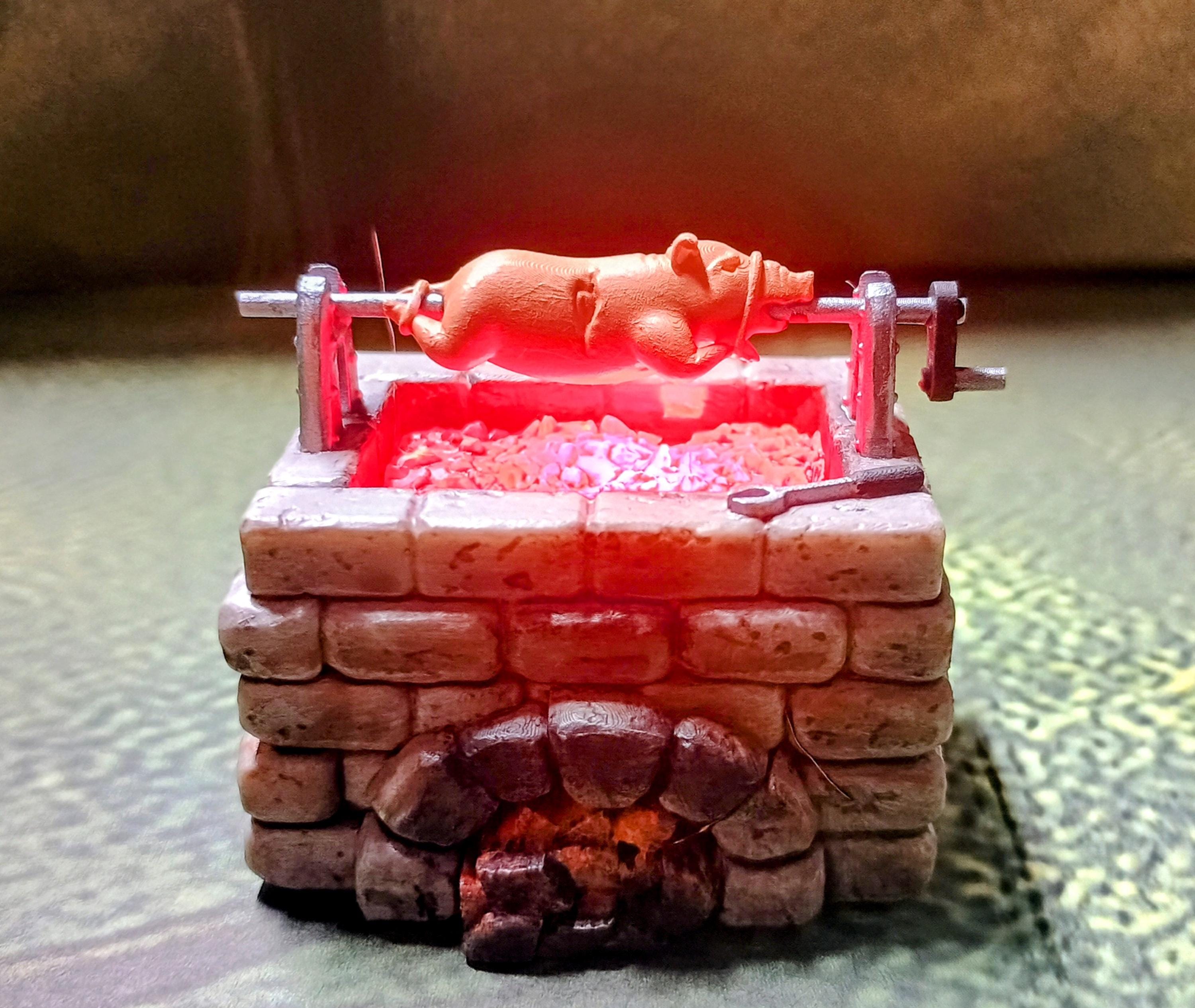 Bring your tabletop world to life with this stunning unpainted Fire Pit Grill with LED. Expertly 3D‑printed for crisp detail, this piece adds dramatic illumination to your fantasy scenes, giving your TTRPG, wargame or diorama that extra spark.