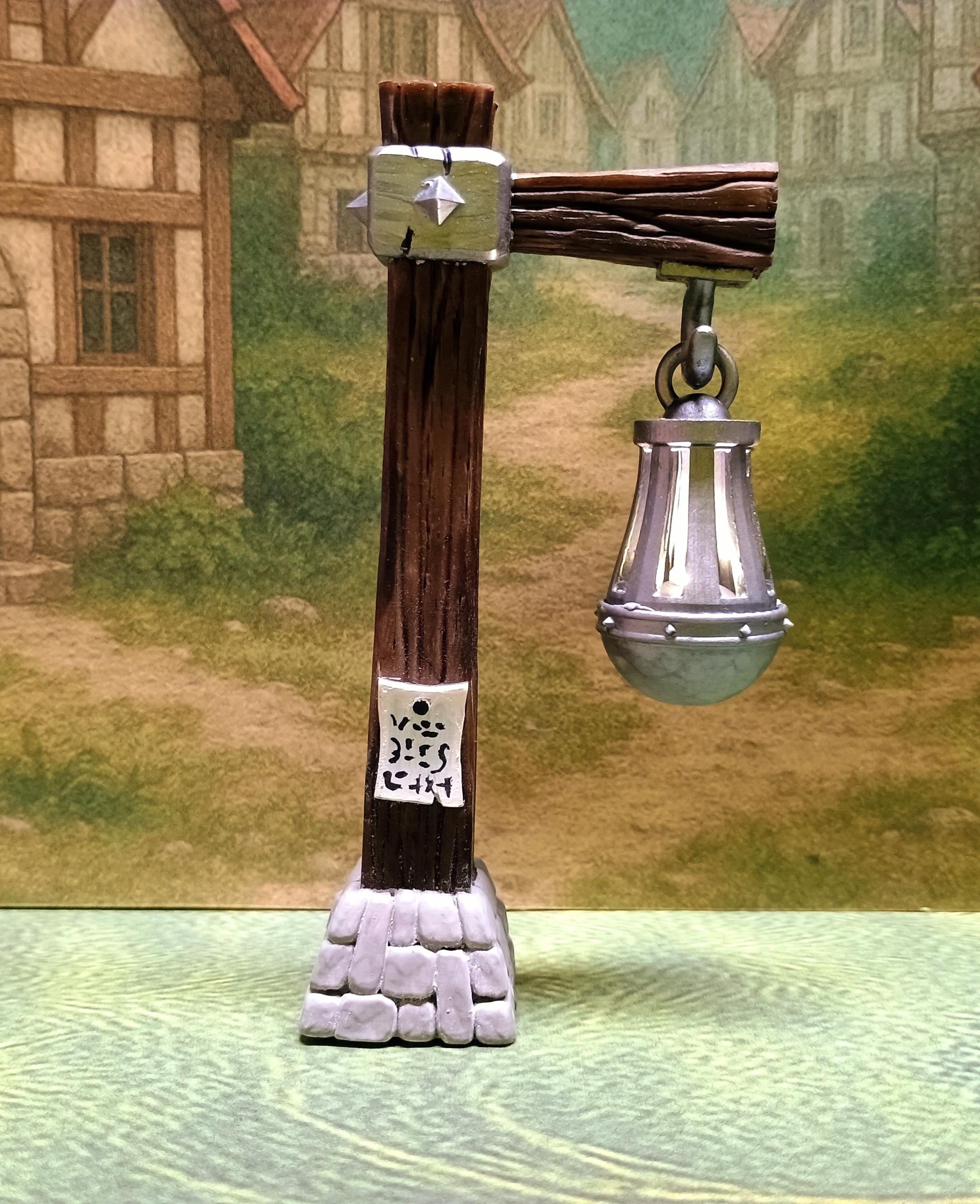 Light your tabletop with sturdy craftsmanship. This resin-printed Hanging Brazier Post adds dramatic, reliable lighting to dungeons, halls, and mountain fortresses. Each unit is precision-printed and identical.