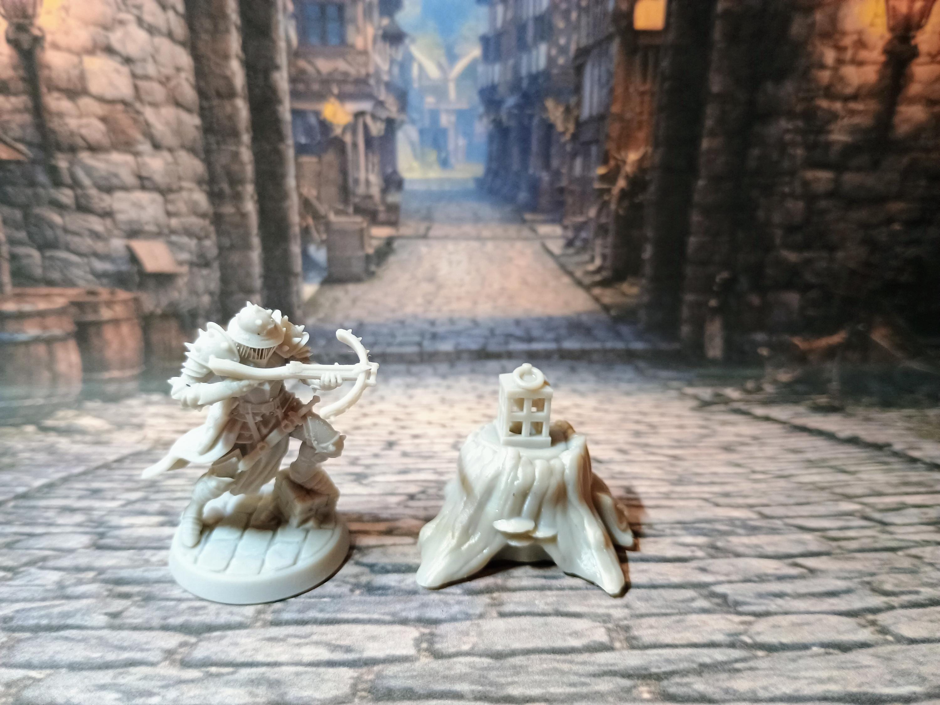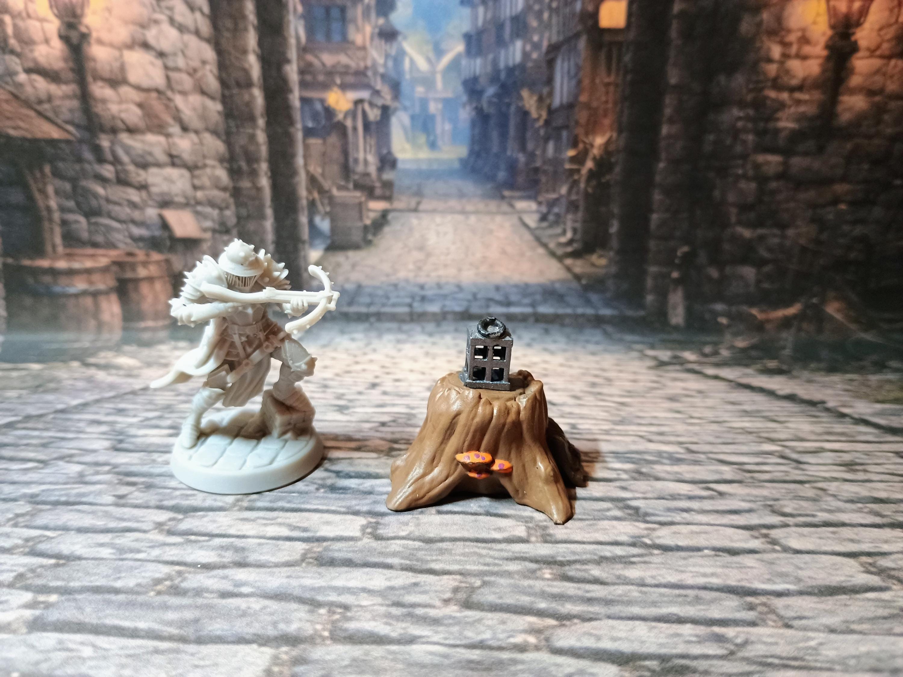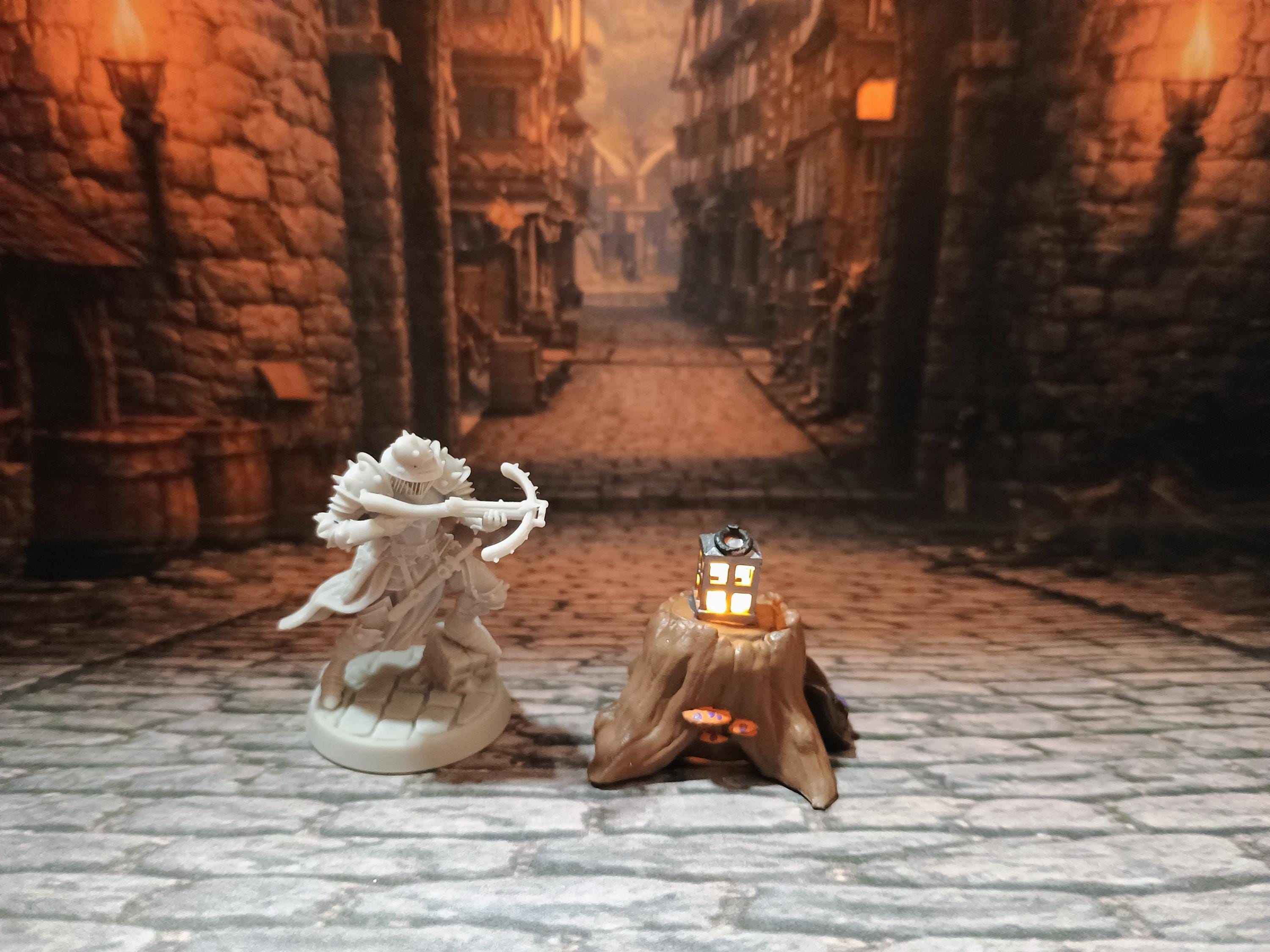 Add warmth and atmosphere to your tabletop builds with this detailed unpainted Lantern on a stump with LED light. This 3D printed terrain piece is perfect for cozy taverns, rustic cottages, or dwarven halls, bringing your fantasy world to life.