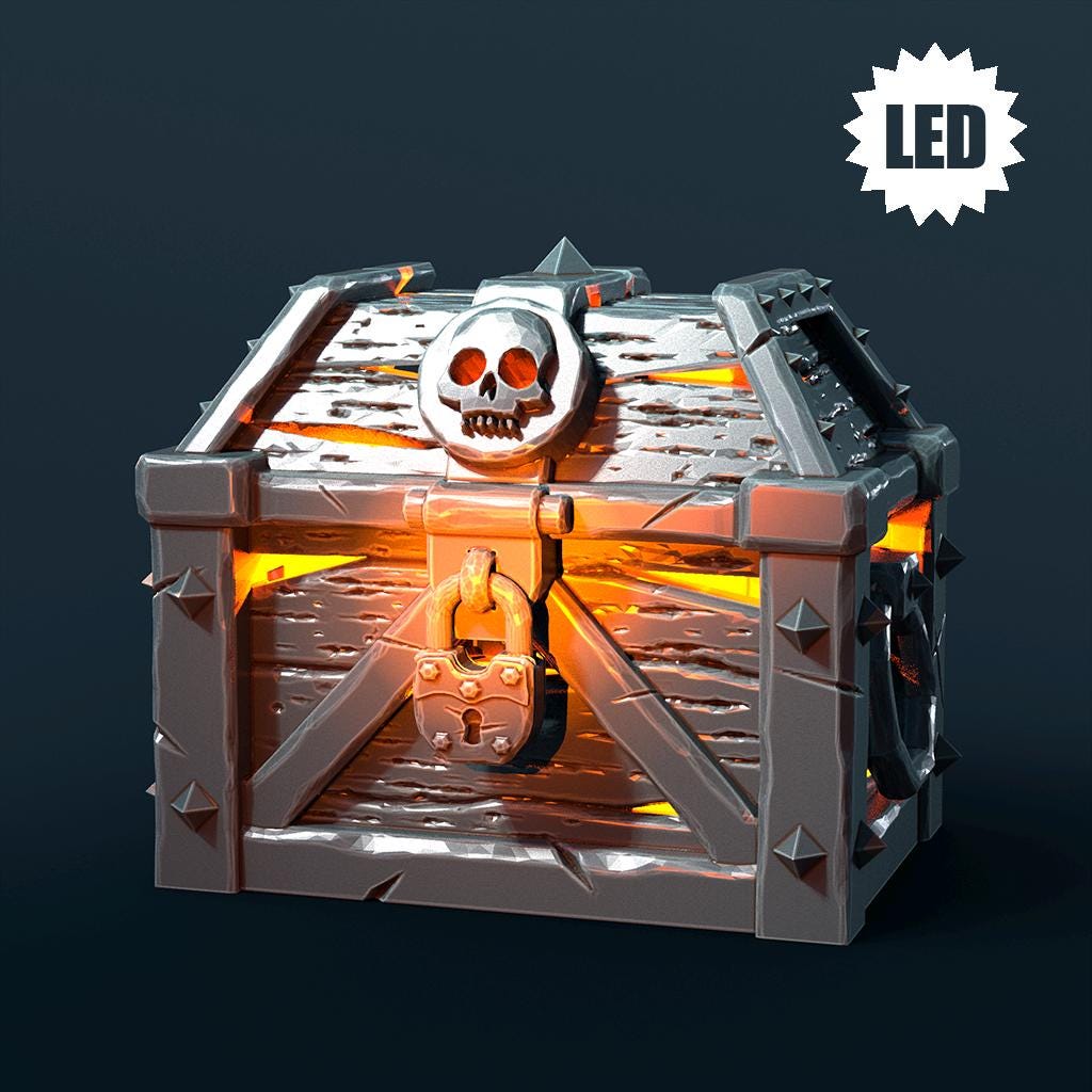Bring your tabletop world to life with this stunning unpainted Igneous Chest with LED . Expertly 3D‑printed for crisp detail, this piece adds dramatic illumination to your fantasy scenes, giving your TTRPG, wargame or diorama that extra spark.