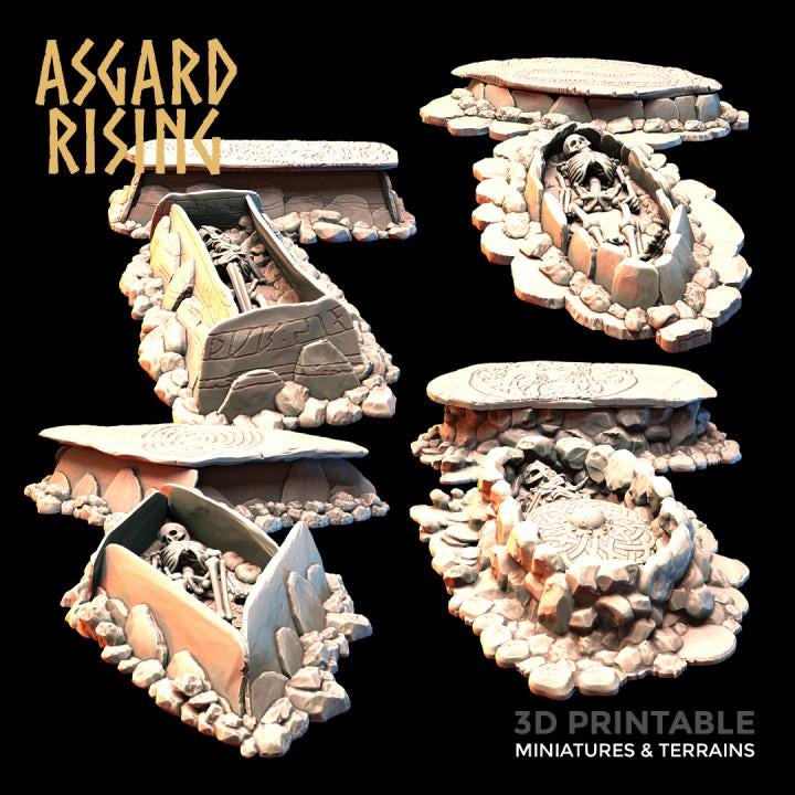 Ancient Grave Terrain Set (Versions A, B, C, D) – 32mm Tabletop Scenery | DnD / Daggerheart / RPG Terrain